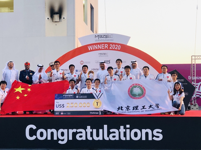 北京時(shí)間2020年2月25日晚,北京理工大學(xué)“飛鷹”隊(duì)在阿聯(lián)酋阿布扎比舉辦的穆罕默德?本?扎耶德國際挑戰(zhàn)賽(MBZIRC2020)上,奪得冠軍。