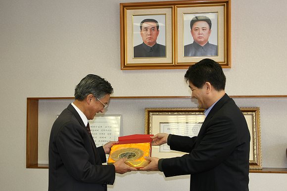 我校副校長趙顯利對朝鮮大學校建校50年的艱難發展歷程表示欽佩,他也向朝鮮大學校方面介紹了我校的基本情況,基于辦學淵源、發展歷史、專業設置等方面的相似,趙顯利副校長希望兩校以后可以在教學、體育、文化等方面經常交流,共同發展。趙顯利副校長向朝鮮大學校贈送了禮品,以恭賀朝鮮大學校建校50周年。