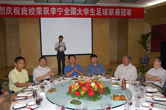 日前,為慶祝我校足球隊重奪全國大學生聯賽總冠軍并且在乙級聯賽中躍居首位,學校在國際教育交流中心隆重舉行了慶功會。黨委書記焦文俊、常務副校長李志祥,黨委副書記、副校長楊賓,黨委副書記侯光明,副校長楊樹興,黨委副書記、紀委書記張維維等學校領導,以及北京市教委、中國足協相關部門領導出席了慶功會。