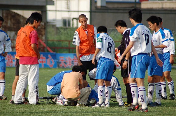 隊(duì)員除了在拼搶中受傷外,還有自己被場(chǎng)地給忽悠倒了的。