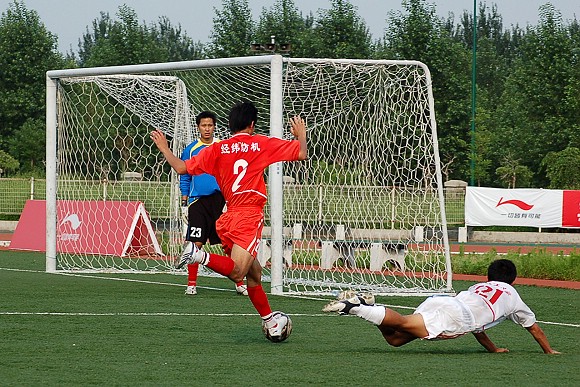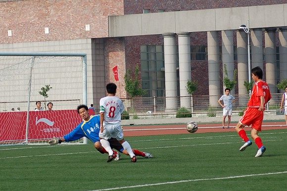 7月7日下午,我校足球隊在沈陽理工大學足球場迎來了李寧杯第六屆中國大學生足球聯賽的半決賽,對手為東華大學足球隊。東華大學隊可謂是我校的老對手,在2004年全國大運會的足球決賽中與我校足球隊戰成平局,最后靠點球大戰獲得冠軍,我校足球隊屈居第二(點擊進入相關報道)。在2005年飛利浦第五屆中國大學生足球聯賽的半決賽中,由于我校足球隊處于新老交替時期,再次以0:2告負東華大學隊(點擊進入相關報道),在三、四名決賽中又負于同濟大學隊從而名列第四(點擊進入相關報道),而東華大學隊則在決賽中戰勝中國人民大學隊獲得冠軍。