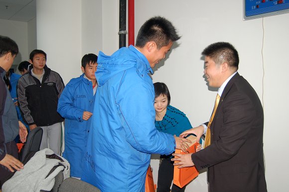 馮軍先生的的演講得到了隊員們的熱烈歡迎,會后馮軍先生還向足球隊每位成員贈送了一套“愛國者國際象棋”,希望大家在比賽、訓練之余,通過下棋來放松心情,體會“六贏”理念和團隊精神的精髓。馮先生向每個隊員表示:華旗公司將永遠向你們敞開大門,歡迎隊員們在畢業之后加入華旗公司和“愛國者”團隊。