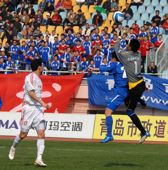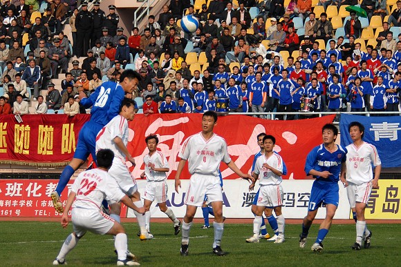 此后,青島隊利用主場優勢,不斷加強對愛國者大學生隊門前的圍攻,創造了多次得分機會,愛國者大學生隊憑借頑強的防守,一次次化險為夷,并利用防守反擊,在身高、技術處于劣勢的情況下,充分發揮了北京足球小、快、靈的特色,頑強的抵抗住了青島隊上半場后15分鐘的瘋狂進攻。