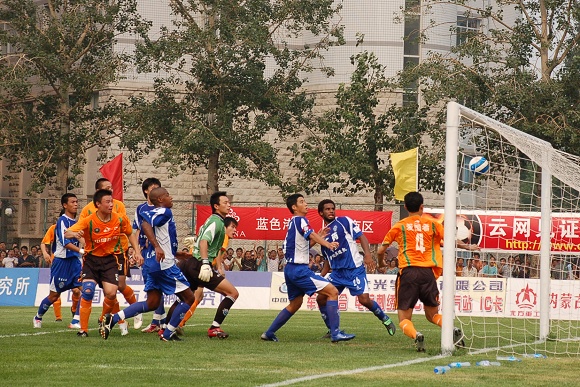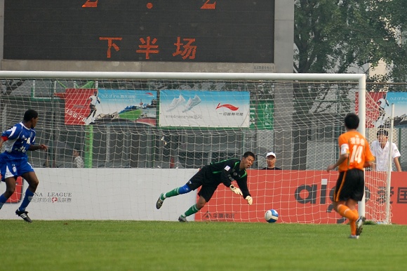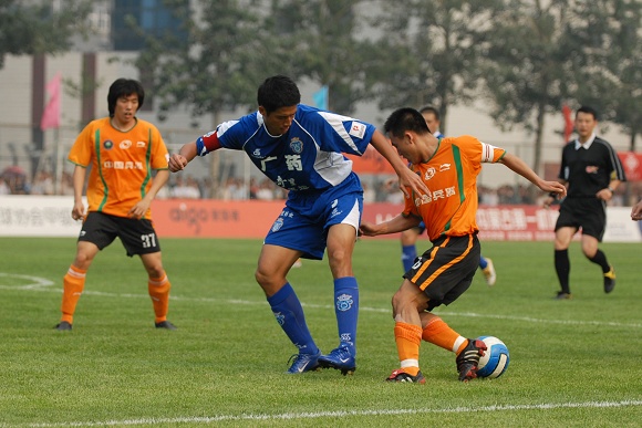 也許是輕敵的緣故,廣州醫藥隊一上來踢得有些漫不經心。而學生軍面對勁敵絲毫沒有放棄,大家都鼓足了勁奮力一搏。比賽前20分鐘雙方各有破門機會,廣藥并沒能在學生軍身上占到便宜。相反,愛國者大學生隊頻頻通過反擊威脅廣藥的防線,第26分鐘,韓國留學生金俊植左路帶球狂奔10余米后大力抽射,球稍微高出廣藥大門。第29分鐘,愛國者大學生隊隊長袁微被廣州醫藥外援撞傷,一分鐘后他再次被踢中,受傷不輕,被擔架抬出場外后才再次回到場上。