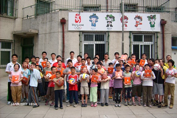 黨員們在為孩子們送去關心和溫暖的同時,也向他們宣傳奧運會以及殘疾人奧運會的相關知識。為這些殘疾兒童送去了籃球、足球、排球、運動服裝、畫筆、書籍等文體用具。