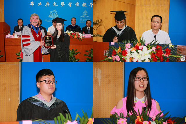 楊樹興副校長發(fā)表致辭,他首先向即將邁向人生新旅程的畢業(yè)生們表示熱烈的祝賀,并向?qū)3虂砣A參加畢業(yè)典禮的猶他州立大學(xué)嘉賓們表示誠摯的歡迎。他叮囑同學(xué)們要懂得感恩、珍惜時光、勇于承擔(dān)肩上的責(zé)任。同學(xué)們離開校園之后,將融入社會的熔爐,面對充滿挑戰(zhàn)的未來,他鼓勵同學(xué)們自信、自強(qiáng)、進(jìn)取。無論同學(xué)們在人生路上遇到什么境遇,母校總是在身后默默關(guān)注和支持他們。最后,他期待同學(xué)們走出校園之后能取得更大的成功,并希望同學(xué)們能夠繼續(xù)關(guān)心母校的建設(shè)和發(fā)展,常回家看看。