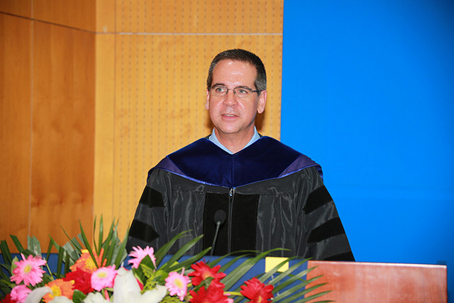 副教務(wù)長Robert W. Wagner教授發(fā)表致辭,他表示非常榮幸與我校進(jìn)行合作,并對我校師生的熱情友好表示感謝,對教職員工的辛勤付出表示敬意。他簡要介紹了猶他州立大學(xué)的學(xué)校概況及學(xué)科優(yōu)勢,表示同學(xué)們所屬的亨茨曼商學(xué)院是美國西部歷史最悠久的商學(xué)院。在如今全球化的大背景下,兩校合作辦學(xué)的教育實踐消除了國界的阻隔,把世界融為一所大校園,為過去和現(xiàn)在搭建了橋梁,為國際社會做出了貢獻(xiàn)。在即將踏上人生下一個臺階之際,他希望同學(xué)們無論是就業(yè)還是繼續(xù)深造,都要學(xué)以致用,永遠(yuǎn)不要停下學(xué)習(xí)的腳步。最后,他向所有在座學(xué)生表達(dá)了美好的祝愿。