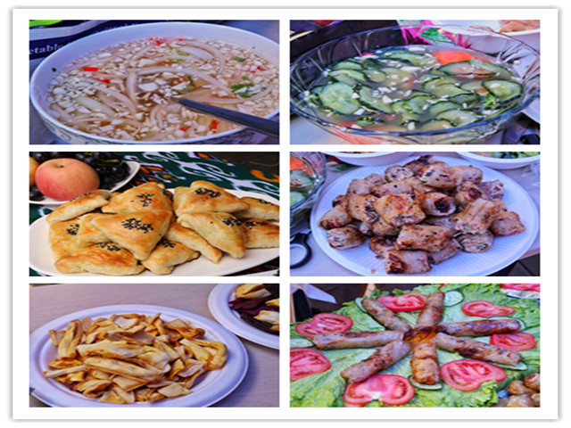 舞臺上,能歌善舞的烏茲別克斯坦同學邀請現場觀眾走上舞臺加入表演,大家和著“Hello Uzbekistan”的音樂左右搖擺,沉醉其中;舞臺下,哈薩克斯坦的同學們組織的拔河比賽也讓現場氣氛熱烈非凡。現場觀眾自由組隊積極參賽,加油,加油的吶喊聲此起彼伏;展臺邊,各國美食琳瑯滿目,主辦國同學熱情地將自己國家美食分享給現場觀眾,“太好吃了”“I like it so much!” “I want more, thank you!” 著實讓現場觀眾流連忘返。身穿莎莉的巴基斯坦姑娘們更是為現場觀眾手繪漢娜紋身,老師們、同學們都樂在其中,通過本次文化節切身體驗了一把“國際范”。