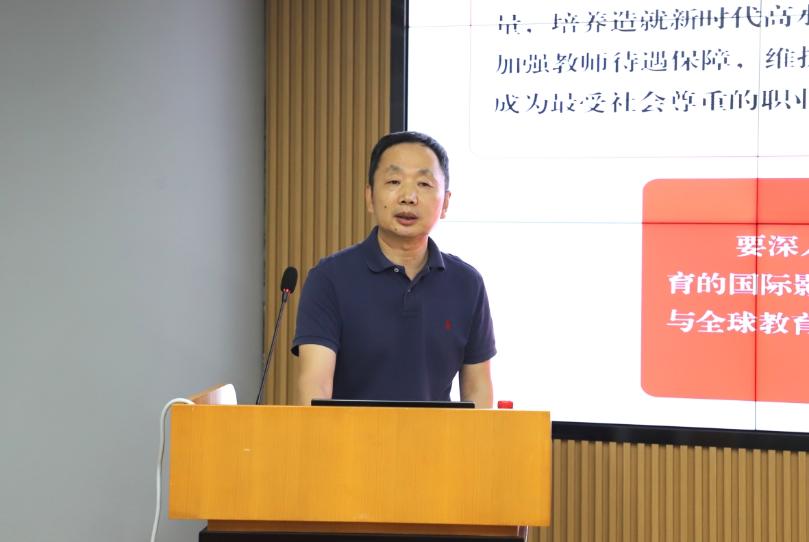 隨后,黨委教師工作部/人力資源部部長金海波以《堅持鑄魂強師·潛心恒心育人》為題進行了師德師風政策解讀及警示案例通報。金海波系統(tǒng)梳理了2014年以來習近平總書記關于師德師風的重要論述;詳細介紹了師德師風總體要求,就“紅七條”、“十準則”、“十不得”等規(guī)范展開了深刻解讀;全方位展示了學校在師德師風建設工作中的實踐探索與創(chuàng)新成果;并結(jié)合典型警示案例,讓圖書館教職工對師德師風建設有了更為直觀、深刻的認識;明確了師德師風無小事,必須時刻增強堅守底線、不越紅線的紀律意識。
