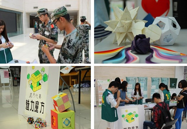 為配合本次贈(zèng)書活動(dòng),圖書館組織微塵志愿者協(xié)會(huì)和折紙社開展了“魔方還原大賽”,評(píng)選出還原魔方用時(shí)最短的三位同學(xué),并邀請(qǐng)他們參加贈(zèng)書儀式。