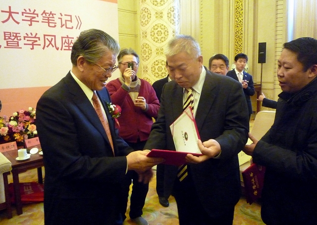 由高等教育出版社主辦的“李鐵映《大學(xué)筆記》圖書捐贈活動(dòng)暨學(xué)風(fēng)座談會”于2010年1月30日在人民大會堂舉辦。原中共中央政治局委員,第十屆全國人大常委會副委員長李鐵映、新聞出版總署署長柳斌杰、教育部副部長郝平等領(lǐng)導(dǎo)同志出席了會議。會上,李鐵映同志向北京大學(xué)、清華大學(xué)、中國人民大學(xué)、北京師范大學(xué)、北京理工大學(xué)等10所高等院校捐贈了《大學(xué)筆記》(16卷)和《大學(xué)筆記》(AB卷)兩部圖書。我校副校長李和章參加了會議并代表學(xué)校接收了贈書。圖書館副館長馬宏偉也參加了會議。