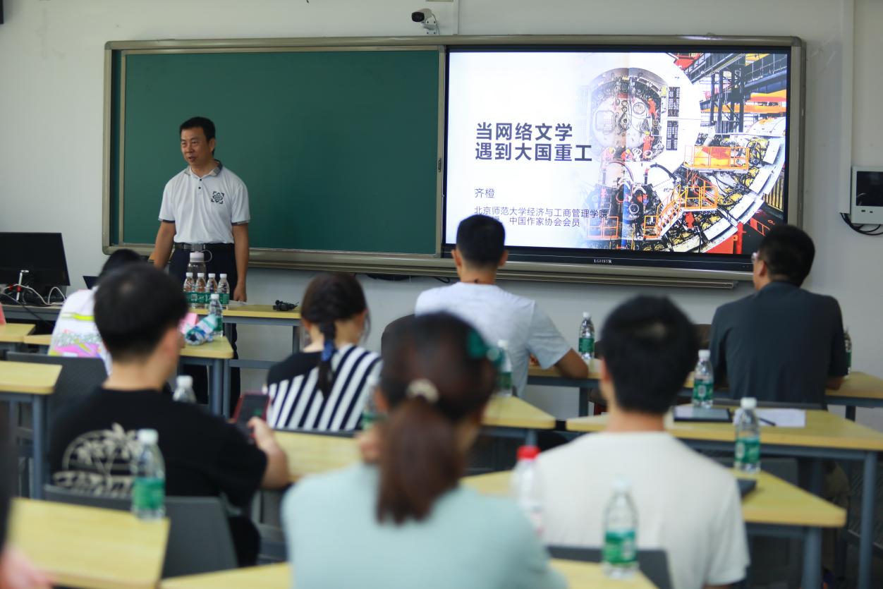 6月20日上午,著名網絡作家齊橙、青年作家陸月櫻做客北理工,與青年學子們面對面交流,分享創作經歷、溝通創作心得、探討行業發展。齊橙,本名龔江輝,北京師范大學經濟與工商管理學院副教授,中國作家協會會員,閱文集團簽約作家,從2011年開始,他以“齊橙”為網名,在起點中文網先后發表了《工業霸主》《材料帝國》《大國重工》《何日請長纓》等作品,引起巨大社會反響的同時,也帶動了網文界寫作工業小說的風潮。