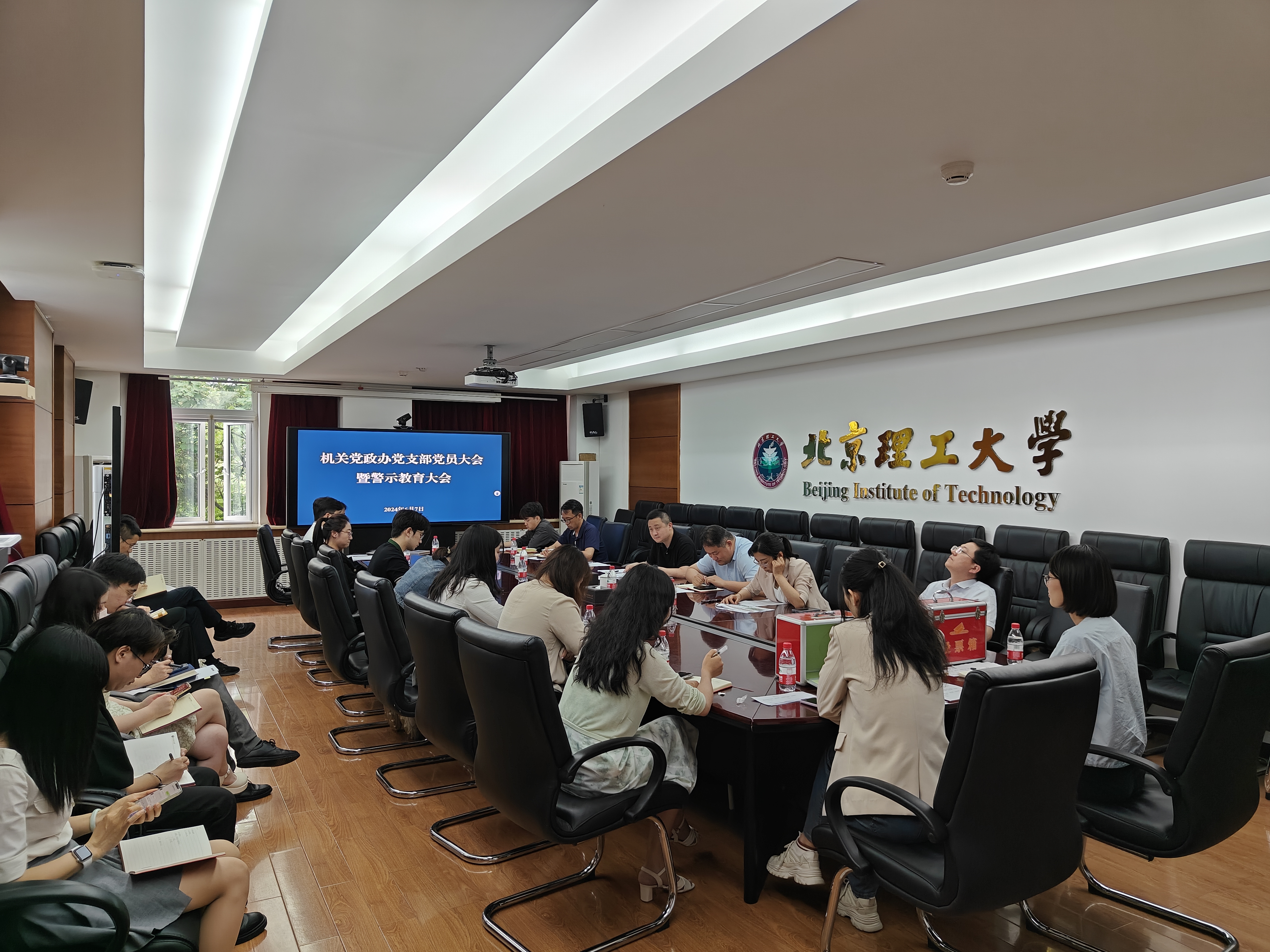 2024年6月7日,黨政辦公室黨支部在2號辦公樓211會議室召開支部黨員大會暨警示教育大會,全體黨員參加會議。會議由黨支部書記楊帆主持。