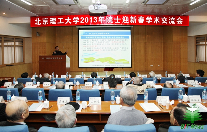 校長胡海巖院士主持學術報告會并發表了熱情洋溢的歡迎詞,簡要介紹了學校2012年的各項工作,向各位院士長期以來對學校的關懷和支持表示感謝。2012年國家最高科技獎獲得者、我校校友王小謨院士也蒞臨交流會現場,胡海巖校長代表學校向王小謨院士表示祝賀,同時預祝各位院士新春快樂,闔家幸福,身體健康,萬事如意。