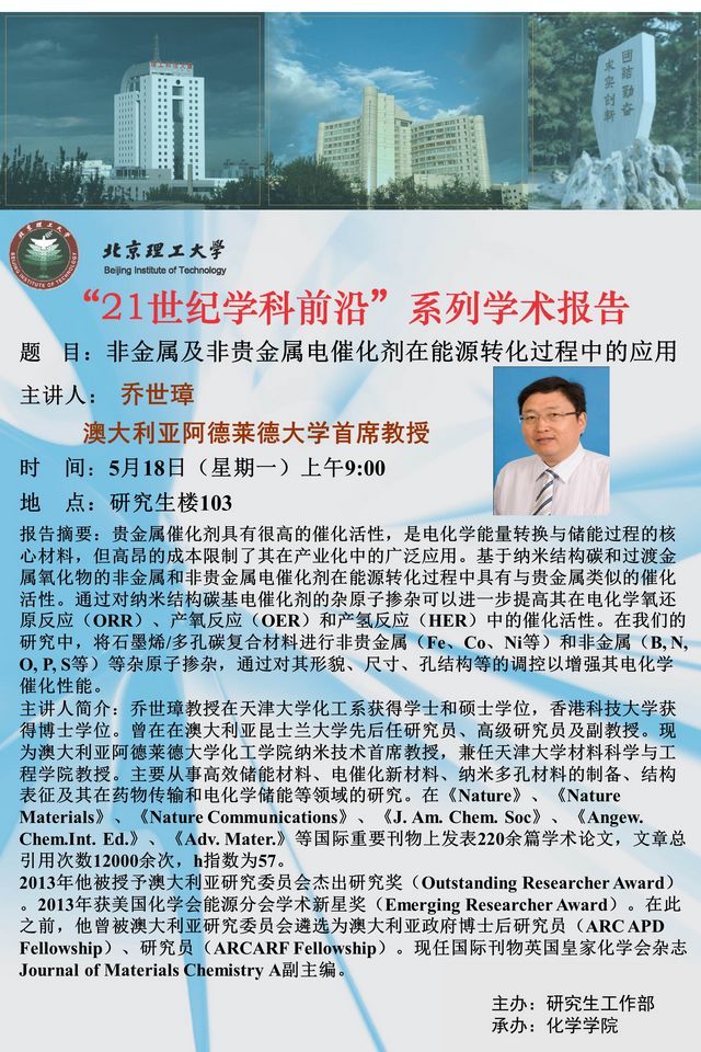 化學學院"21世紀學科前沿"系列學術報告預告2