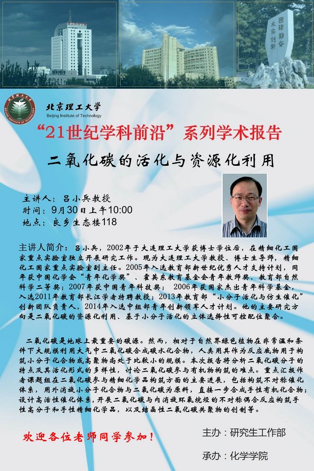 【化學學院】“21世紀學科前沿”呂小兵教授學術報告通知