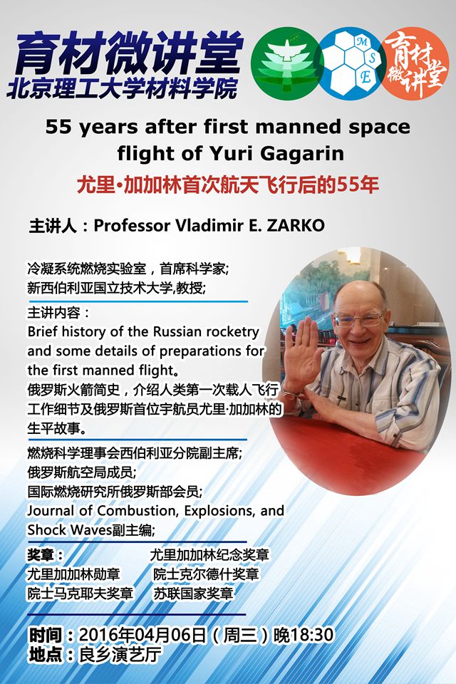 嘉賓:Vladimir E.ZARKO教授。新西伯利亞國立技術大學,教授,冷凝系統燃燒實驗室首席科學家。獲得過,尤里加加林紀念獎章(俄羅斯宇宙航行聯合會2011),尤里加加林勛章(俄羅斯航天博物館協會1999),克爾德什院士獎章(俄羅斯航天部1993),馬克耶夫院士獎章(俄羅斯航天部1992)和蘇聯國家獎章(杰出貢獻1984)。現任燃燒科學理事會西伯利亞分院副主席,俄羅斯航空局成員,國際燃燒研究所俄羅斯部會員及Journal of Combustion, Explosions, and Shock Waves副主編。
