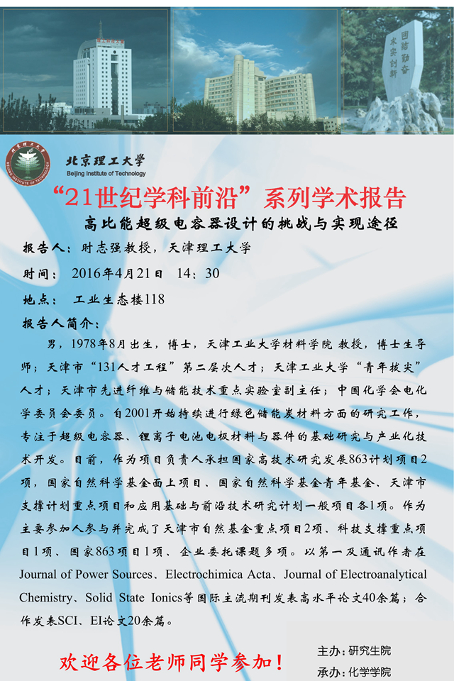 【化學學院】“21世紀學科前沿”時志強教授學術報告通知