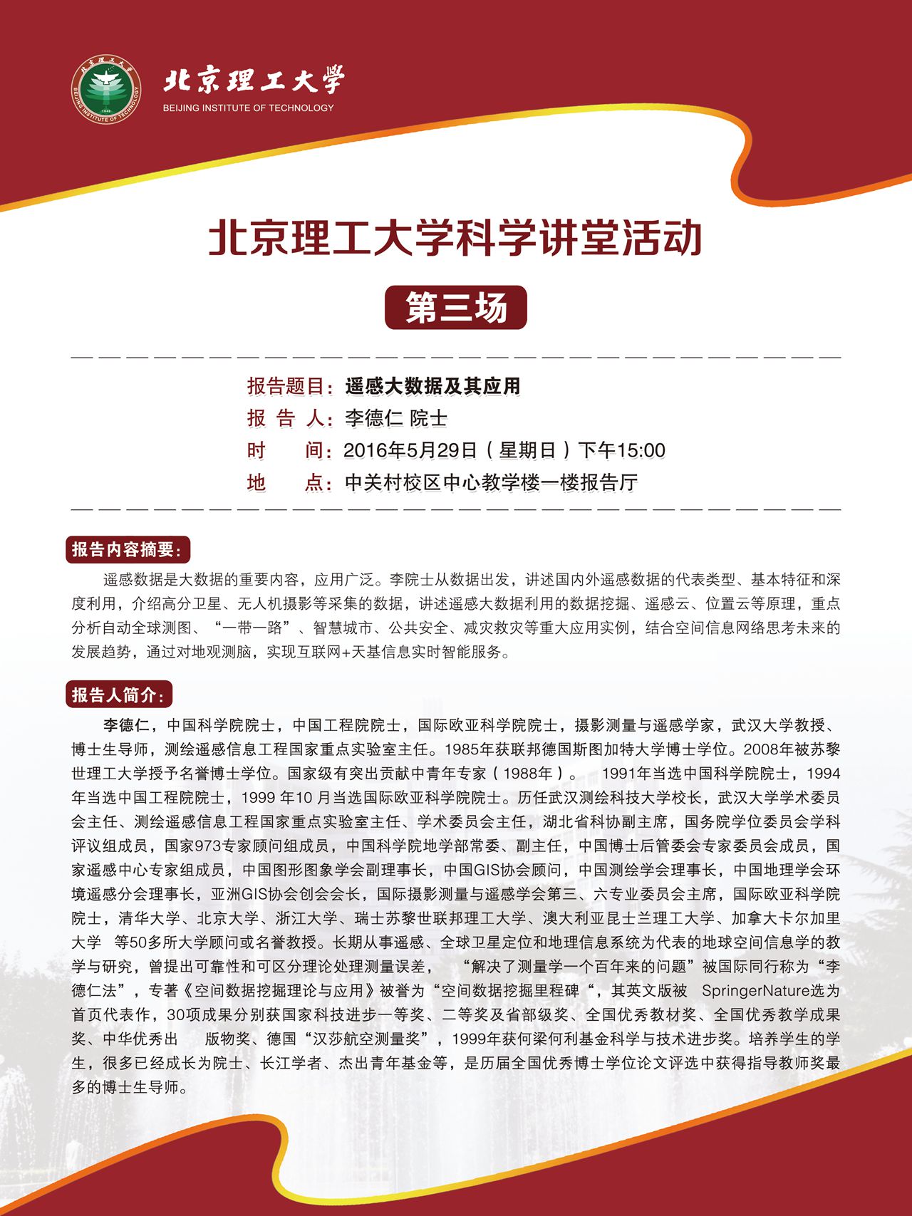 我校邀請了中國科學院、中國工程院、國際歐亞科學院李德仁院士于5月29日(本周日)下午來校做遙感大數據及其應用的學術報告,歡迎感興趣的老師及同學參加本次科學講堂活動。