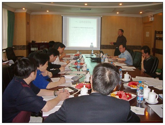 校長助理龐思勤在向專家組匯報項目的總體建設情況。