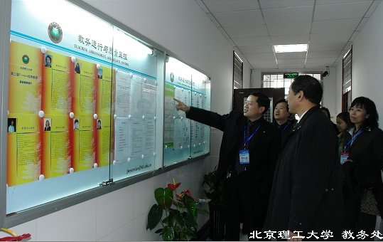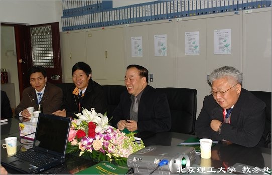 2007年11月15日,評估專家組副組長周玉,評估專家組成員張湘偉、裘松良、傅豐林、曾志新、羅正祥、高占先、袁軍堂在聯絡員的陪同下先后蒞臨教務處,指導本科教學管理工作。校長助理兼教務處處長龐思勤向專家匯報了近幾年教務處的工作情況和取得的成績,副處長閆達遠、韓寶玲就專家提出的問題作出了詳盡的回答,并就教學改革、教務管理等相關問題和專家們進行了交流。參加會議的還有教研科科長明道福、質量科科長張麗娜、教務科科長張瑋、教育培訓管理辦公室主任方萍、綜合科科長楊亞楠。