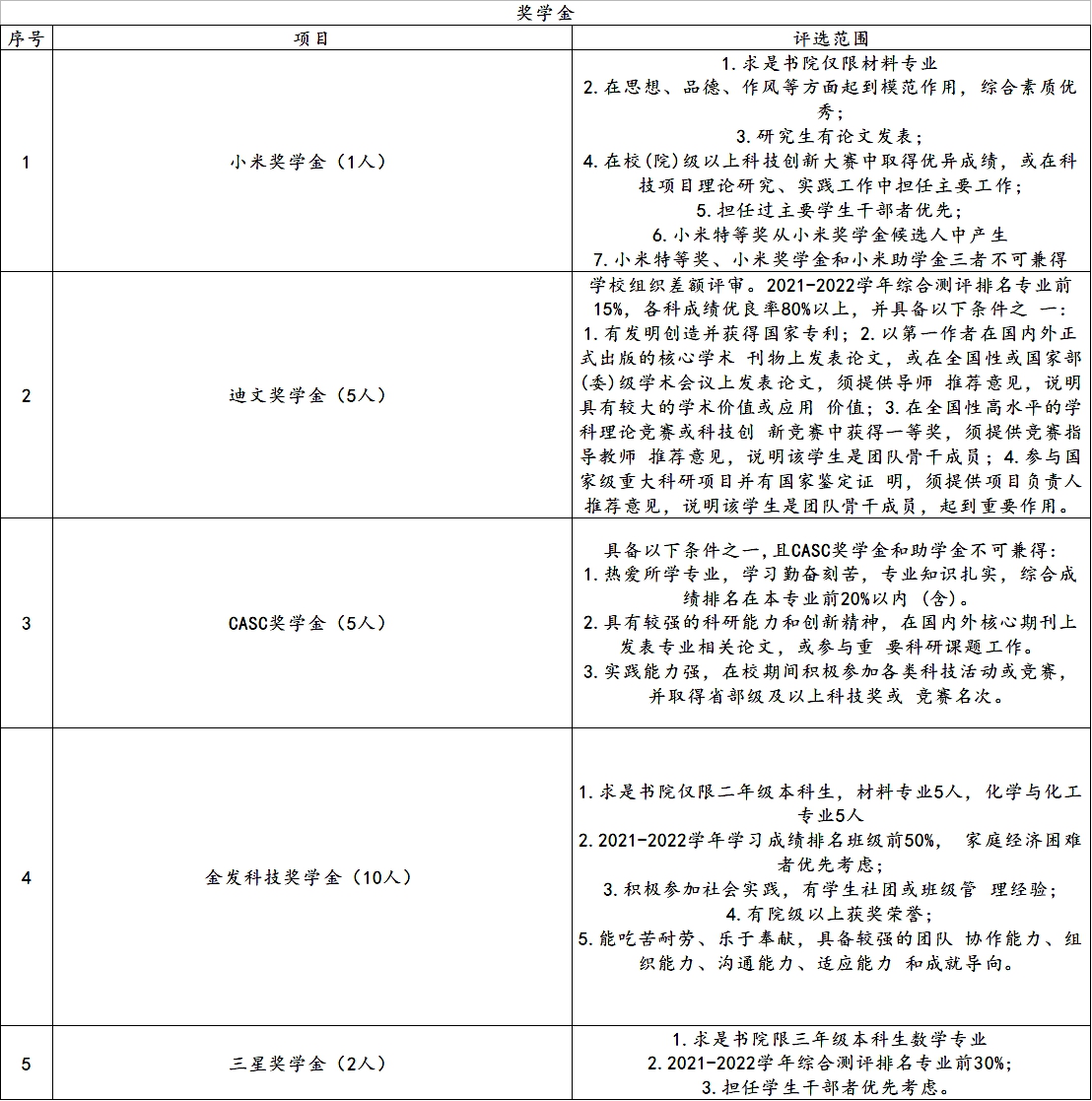 5.同一學年評審的國家獎學金(包括本科生和研究生)、國家勵志獎學金、社捐類獎學金不可兼得的,特殊說明除外。