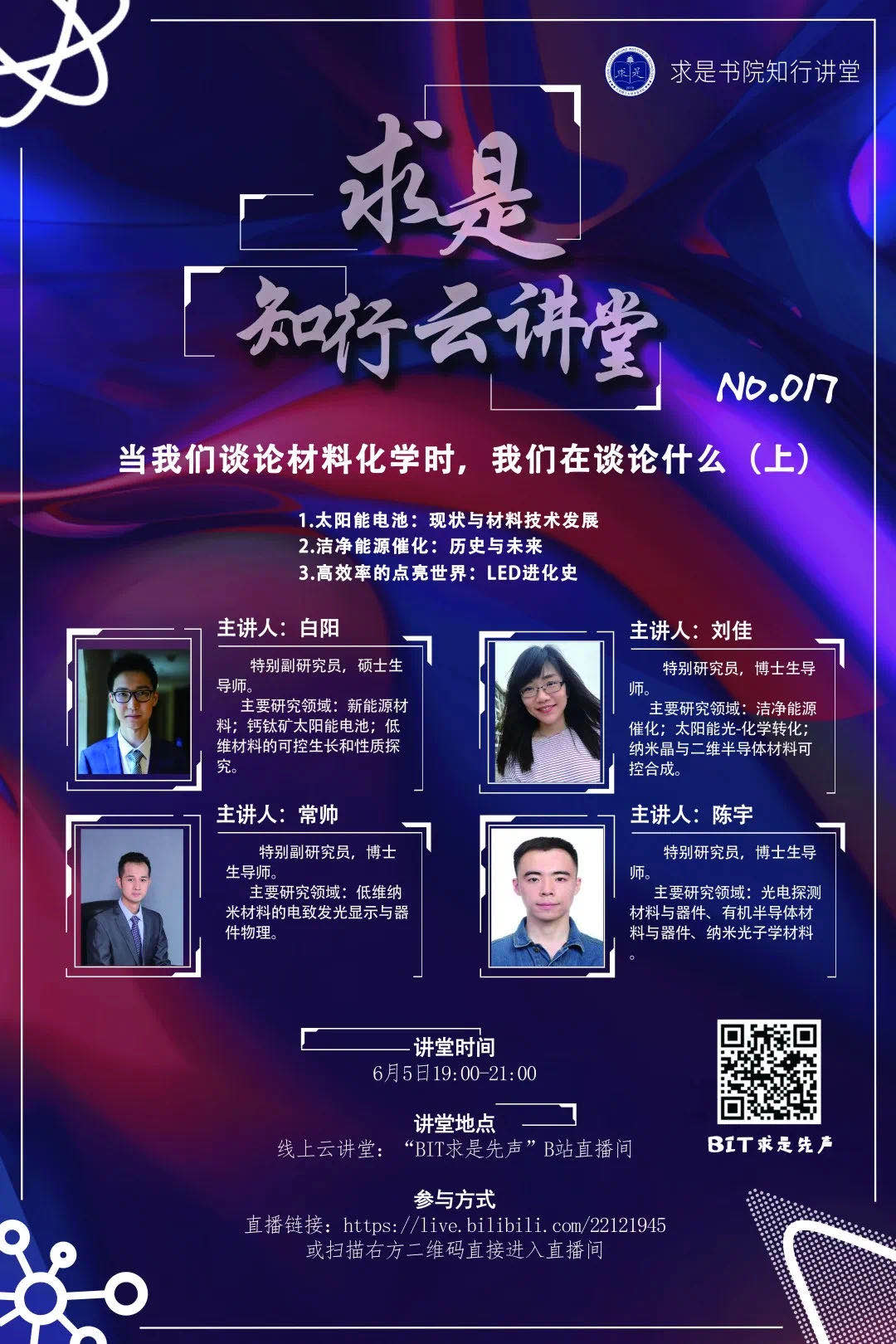 為了解答這些疑惑,6月5日,求是知行云講堂第十七期在嗶哩嗶哩平臺(tái)正式與大家見(jiàn)面了。本期知行云講堂邀請(qǐng)到了材料學(xué)院材料物理與化學(xué)系的陳宇老師、劉佳老師、常帥老師和白陽(yáng)老師作為主講人,為大家講授關(guān)于材料化學(xué)的知識(shí),同時(shí)也向大家介紹了材料物理與化學(xué)系,讓即將進(jìn)行專(zhuān)業(yè)選擇的大一新生對(duì)材料物理與化學(xué)系有了更深的了解。本次知行講堂由求是書(shū)院與材料學(xué)院合辦,材料物理與化學(xué)系承辦,將分上下兩期為求是書(shū)生進(jìn)行材料化學(xué)的科普講座。