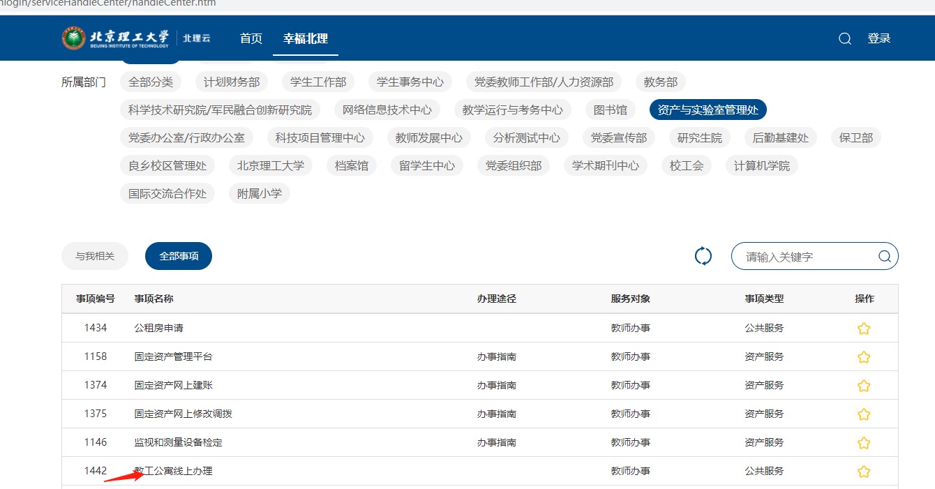 登錄校園網“幸福北理”,通過“教工公寓系統線上辦理”,通過“教師公寓申請”入口,填寫教師公寓租住申請表。