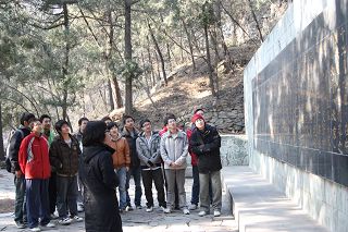 俗話說:上山容易下山難。明麗的陽光,清新的空氣,清脆的鳥鳴,一切的一切都讓大家的心情無比的舒暢。不知不覺中,來到了目的地——北京植物園“一二.九”紀念亭。