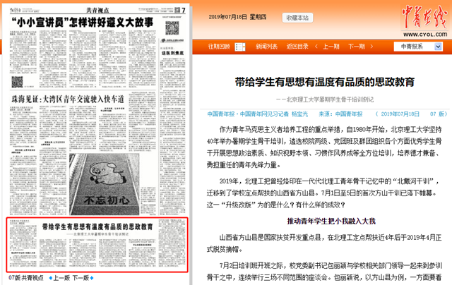 北理工方山干訓實現了“四個協同”——協同學校社會資源、協同思政課程和課程思政、協同專職黨務干部和思政課教師、協同理論教育與社會觀察社會實踐,邀請有深厚理論功底、有扎實基層工作基礎,貼近學生學習生活的校內外青年專家、一線骨干,從大國博弈、愛國主義、扶貧攻堅、中國化的馬克思主義等不同方面,帶領學生們辯證認識中國和世界,幫助大家找準成長方位和坐標。