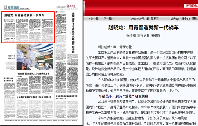 在入職6年多的時間里,趙曉龍先后參與了一機集團多個型號產品項目的研發、設計與試驗工作,獲得國防專利4項、發明專利1項及集團公司和包頭市級勞動模范榮譽稱號,他用自己所學,將青春寫在了國防事業的洪流之中。