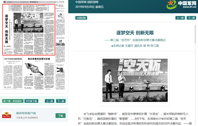 會飛會鉆會爬墻的“蜘蛛俠”、能在空中懸停的撲翼“大昆蟲”、超長續(xù)航的炮射無人機(jī)“閃電鳥”、瞬間洞察秋毫的“智慧眼”……8月下旬,在湖南長沙舉辦的第二屆“空天杯”全國創(chuàng)新創(chuàng)意大賽決賽現(xiàn)場,來自全國29所高校和科研機(jī)構(gòu)提交的50件決賽作品,一一展現(xiàn)在評審專家和觀眾面前。