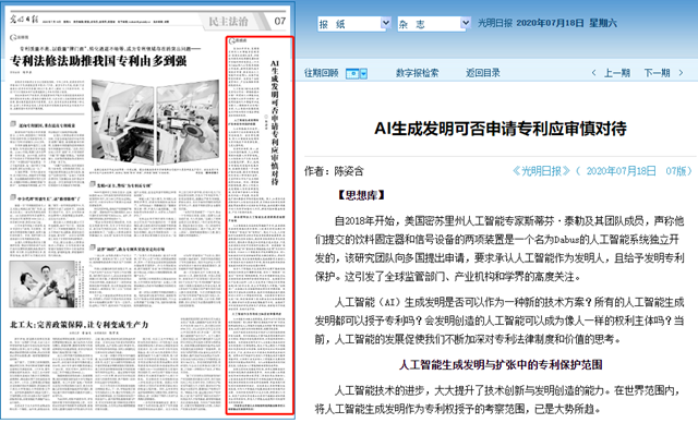 自2018年開始,美國密蘇里州人工智能專家斯蒂芬·泰勒及其團隊成員,聲稱他們提交的飲料固定器和信號設備的兩項裝置是一個名為Dabus的人工智能系統獨立開發的,該研究團隊向多國提出申請,要求承認人工智能作為發明人,且給予發明專利保護。這引發了全球監管部門、產業機構和學界的高度關注。