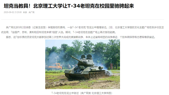 坦克當教具!北京理工大學讓T-34老坦克在校園里馳騁起來