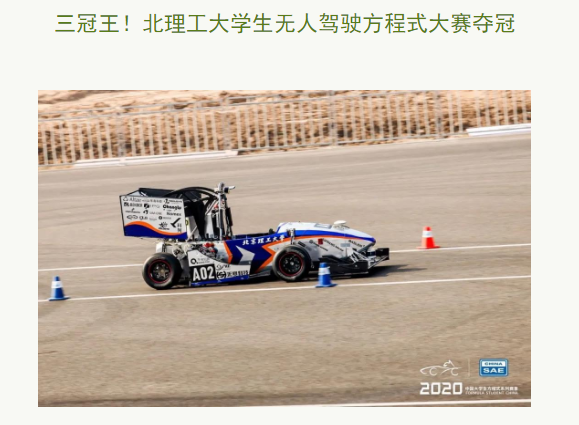 11月14日,北京理工大學無人駕駛方程式車隊在湖北省襄陽市舉辦的中國大學生無人駕駛方程式大賽上奪得全國總冠軍。