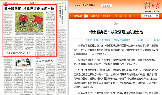 從1999年至今,“博士服務團”作為中組部、團中央支持西部大開發、促進區域協調發展和培養鍛煉青年人才的重要項目,已先后選派20批3816名成員參加服務鍛煉,其中,到西藏、新疆、青海等民族地區服務的博士占相當大的比例。在江祥林看來,加入博士服務團到邊疆鍛煉,既讓其走出象牙塔、把論文寫在大地上,在基層實踐的“大熔爐”里得到淬煉;也作為一個“橋梁紐帶 ”,為經濟建設的主戰場、重點項目的第一線引入資源,解決了當地一些實實在在的發展難題。