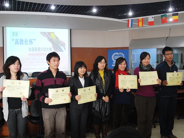 12月12日,首屆“高教社杯”全國英語口譯大賽華北區復賽于對外經濟貿易大學落下帷幕。在我校外國語學院張淵老師的指導下,2006級英語系劉念同學代表北京理工大學參加了此次比賽。參賽選手包括來自清華大學,外交學院,南開大學,對外經貿大學等知名學府的三十二名英語佼佼者。比賽實行分輪淘汰制,選手需進行英譯中,中譯英和中英對話互譯三輪激烈角逐。劉念同學順利進入最后一輪比賽,并最終取得了第五名的佳績,榮獲華北賽區二等獎。