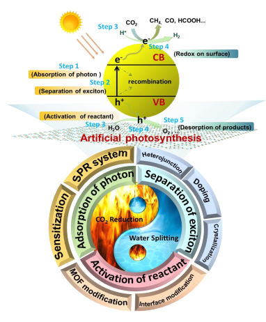 隨著工業化進程的加劇及人口的不斷增長,能源危機和環境污染成為全球性問題。探索清潔可再生能源的生產及CO2高值化利用對于緩解能源危機、改善環境狀況以及促進碳中和具有重要意義。受植物光合作用的啟發,以太陽光為驅動力,在半導體催化劑的作用下,實現光催化CO2轉化(CRR)及光解水制氫(HER)正在逐步成為具有巨大發展潛力的策略。如何合理地設計高效的半導體光催化劑已成為相關領域的一個研究熱點(圖1)。