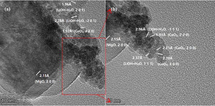 圖3 MgCeLi-8-6 脫水后高分辨透射電鏡圖