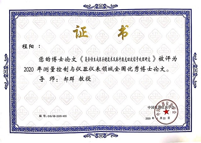 ?北理工學子獲中國儀器儀表學會優秀博士論文獎和提名獎