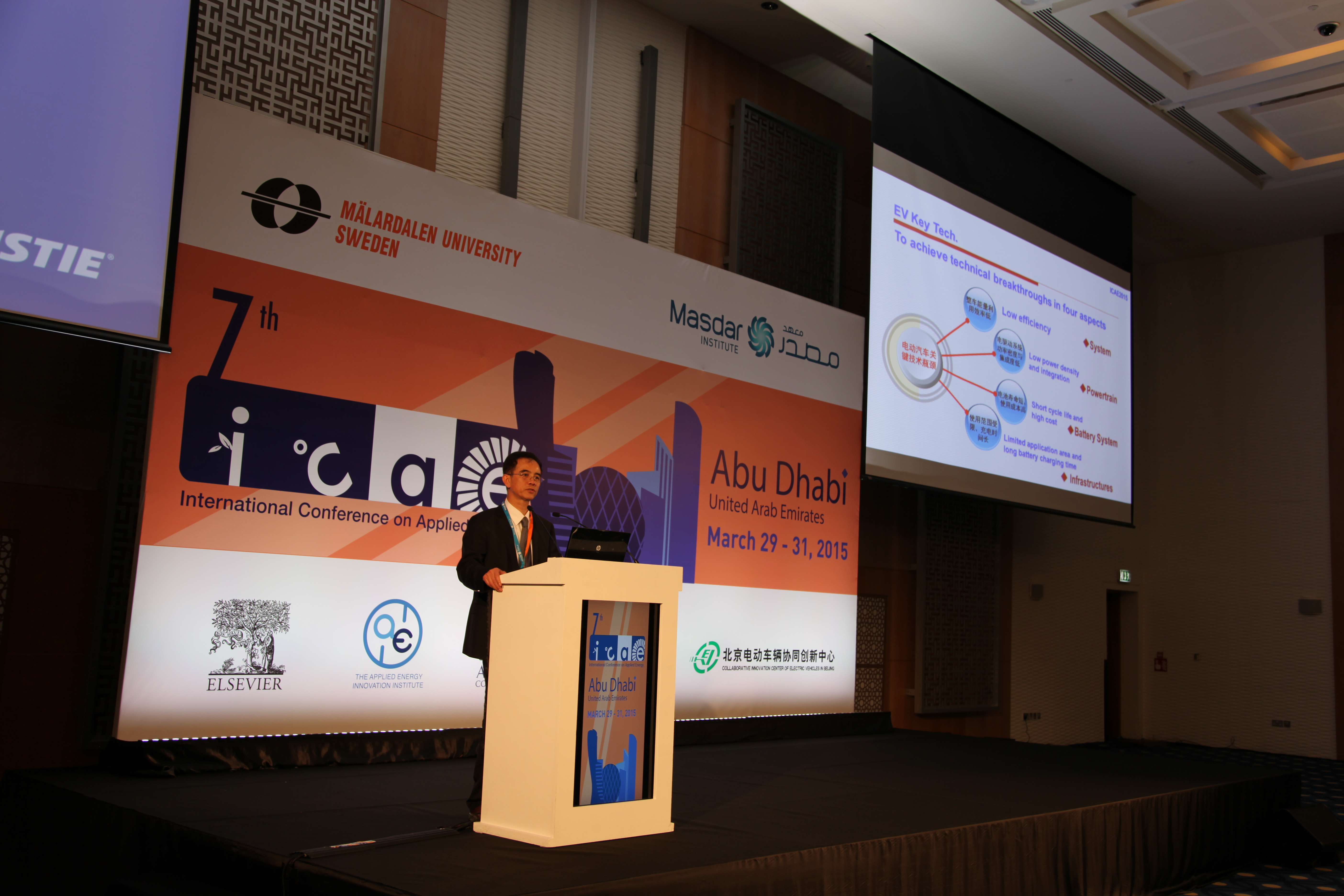 2015年3月28日-31日,由北京電動車輛協同創新中心參與承辦的第七屆國際應用能源大會(The 7th International Conference on Applied Energy,ICAE 2015)在阿聯酋首都阿布扎比國家展覽中心舉行。