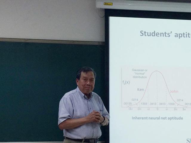 28日下午,楊振寰教授給博士生上了一堂關于學習方法的生動有趣的課程。楊教授從我們每人都具有的生物神經網絡(大腦)的特點出發,帶領聽眾走上一條探求高效學習之路。楊教授結合科研經歷,分析了生物神經網絡(大腦)與人工神經網絡(計算機)各自的優缺點,從而告知大家大腦的可塑性和新陳代謝能力具有不可比擬的優勢。通過聯想記憶、認知學習等方法我們能夠記得快、學得好。楊教授舉了模擬信號傳輸與數字信號傳輸的例子,告訴大家:雖然我們都知道數字系統怎樣運作,但這還是不夠的,我們還應當弄明白事情背后的原因,在這個例子中,我們是為了獲得噪聲免疫特性而放棄了模擬信號高碼率的優點。楊教授講述了先天因素與后天環境對于個人發展的作用,鼓勵大家積極通過努力提升自我。