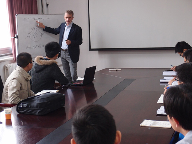 Roberto Tempo教授從社會網絡的實際背景出發,給出了一種基于信息交互的社會網絡模型,用于模擬多個個體就某一話題進行交流,最終得到各自看法的過程。同時,針對多個有關聯話題的交流問題,Roberto Tempo教授給出了自己最新的研究進展,并從理論上證明了相關模型的可行性。會后,Roberto Tempo教授與本校師生進行了熱烈的交流與討論。
