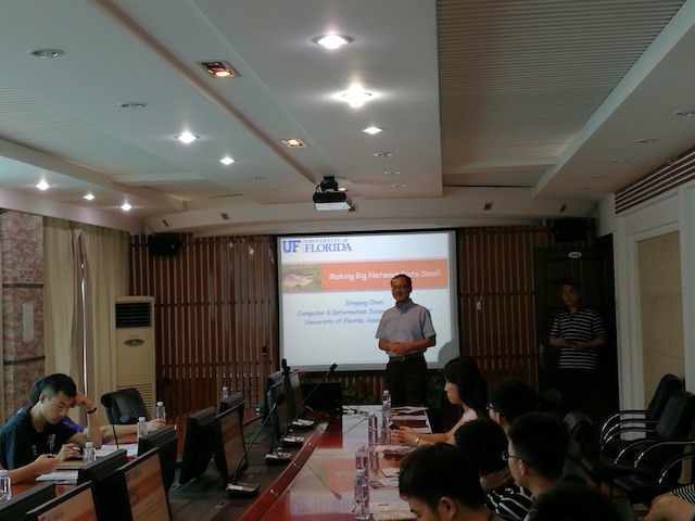編輯:徐韻韻 審核:曲大成 閱讀次數:2017年8月2日,美國佛羅里達大學終身教授、美國電子電氣工程師協(xié)會會士(IEEE Fellow)陳世剛受軟件學院劉馳教授的邀請校進行學術交流,并作題為《讓網絡大數據變小》的“21世紀學科前沿”系列學術報告。
