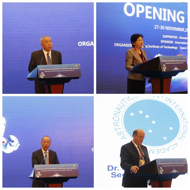 前中國航天部部長、國際宇航科學院副理事長劉紀原,國際宇航科學院秘書長Micheal Contant,中國載人航天工程副總師、國際宇航科學院院士陳善廣,國家航天局系統工程司副司長趙堅,廣東省科學技術廳副廳長楊軍,深圳市政府副市長高自民、經濟貿易和信息化委員會副主任高瞻,中國科學院院士張玉奎、趙玉芬,北京理工大學副校長李和章、原常務副校長楊賓,中國航天員科研訓練中心副總師、深圳太空科技南方研究院副院長李瑩輝,深圳市航空業協會會長朱慶峰,國際宇航科學院生命科學部理事會理事長Chrysoula Kourtidou-Papadeli,國際宇航科學院生命科學部主席Petra Rettberg,聯合國太空司項目主管牛愛民,中國老齡產業協會會長張瑋等領導及重要嘉賓蒞臨開幕式現場。國際宇航科學院院士、北京理工大學鄧玉林教授主持開幕式。