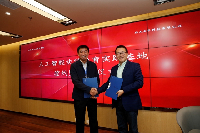 北京理工大學法學院與北大英華科技有限公司攜手共建“人工智能法學教育實踐基地”舉行了簽約儀式。北京理工大學“人工智能法學教育實踐基地”將與北大法寶開展全面合作,共同探索法律人工智能的應用創新,推進法律大數據與人工智能技術在法律行業的深度應用,共同培養復合型高層次法律人才。