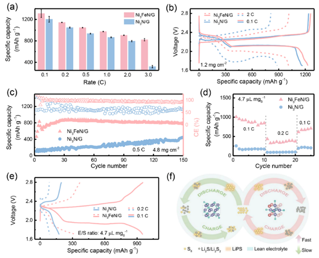 圖3. Ni3FeN催化作用下Li–S電池的電化學性能