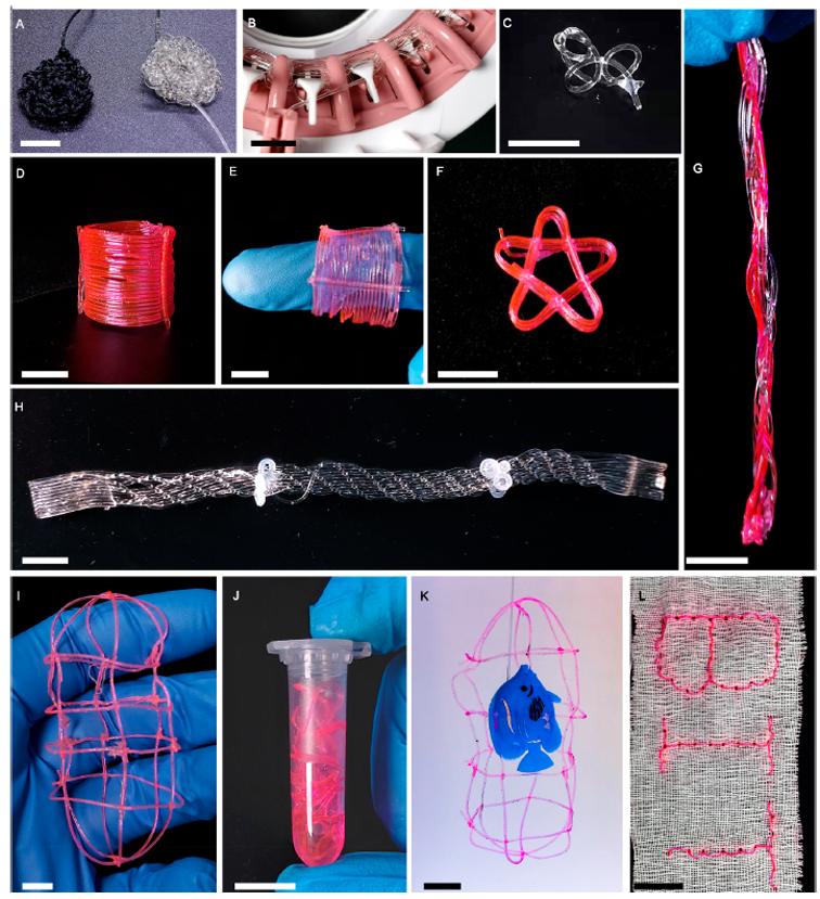 功能材料的加工成型,是新型刺激響應軟體機器人研究的難點之一。與此同時,纖維的加工成型技術已在紡織工業中受到廣泛的研究與應用。若將水凝膠纖維加工成為軟體機器人,水凝膠纖維的快速刺激響應能力與柔韌性將有效的提升軟體機器人性能。然而,目前刺激響應凝膠纖維的發展主要面臨兩個難點:第一,已有水凝膠纖維的生產工藝的兼容性差,目前已有的微流控紡絲、靜電紡絲、熔融紡絲,和墨水直寫紡絲等方法均對纖維單體溶液的物理性質有額外要求或需要相對快速的固化過程;第二,水凝膠纖維由于其含水量較高,機械強度差,在低應力下便會發生斷裂,無法進行復雜或自動化的加工。因此,現有報導水凝膠編織均僅限于簡單結構,且由刺激響應水凝膠編織而成的軟體機器人尚未見報導。