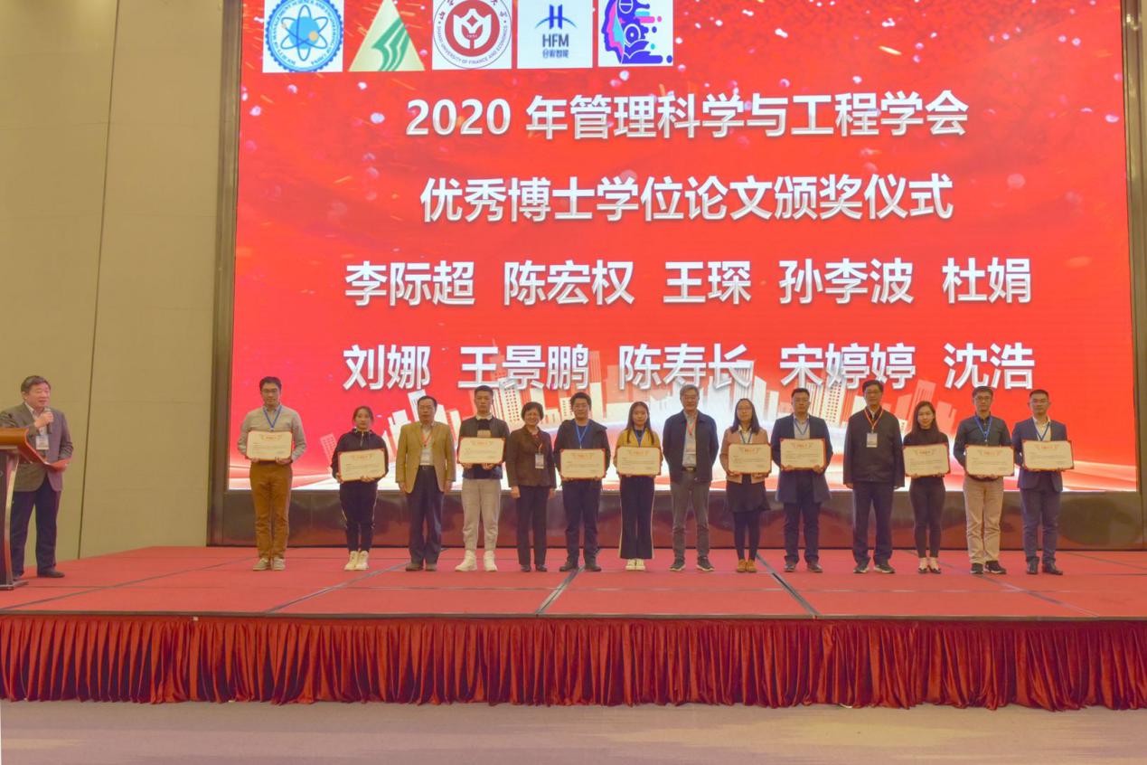 王琛(右三)2020年管理科學與工程學會優秀博士論文獎