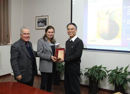 應(yīng)北京理工大學(xué)宇航學(xué)院崔平遠(yuǎn)教授的邀請(qǐng),小天體探測及空間科學(xué)領(lǐng)域國際著名專家、法國巴黎天文臺(tái)高級(jí)天文學(xué)家M. A. Barucci教授和M. Fulchignoni教授來我校進(jìn)行了為期一周的學(xué)術(shù)交流,并為我校師生做了有關(guān)小行星探測任務(wù)、太陽系形成與演化以及小行星撞擊防御的學(xué)術(shù)報(bào)告,并分別就小行星探測的目標(biāo)選擇、小行星探測的科學(xué)目標(biāo)、科學(xué)載荷、小行星著陸、技術(shù)合作等進(jìn)行了專題深入討論。